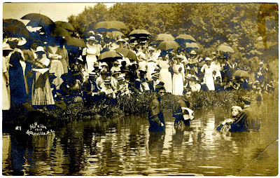 This sounds like a foaf story, but my friend Sue got an e-mail from her daughter-in-law whose friend's husband Jim Linderman of Grand Rapids, Michigan, donated a collection of photographs of river baptisms (1st image, I added the 2nd and 3rd), one over a yard long.