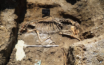 British horse-lovers are hoping that the intact skeleton discovered during the excavation for the new National Heritage Centre for Horseracing and Sporting Art in Newmarket, Suffolk, U.K., are the bones of legendary racehorse Doctor Syntax. On the one hand, this former site of the Royal stables of King Charles II was where the animal was euthanized in 1838, the skeleton matches his height (15 hands). the wear and tear on its joints indicates that it was ridden, and the horse was buried carefully in a specifically dug grave. On the other hand, the smashed skull does not give evidence of the shotgun blast that killed the horse, there is no trace of any other injuries on the skeleton, and the teeth show that the buried horse was 18 to 20 years old whereas Doctor Syntax is believed to have died at the age of 28. Archaeologist Chris Faine of Oxford Archaeology states, "It was certainly a racehorse, all the evidence points to that. I don't think it could be Doctor Syntax, but you would have to carry out DNA tests to make sure."